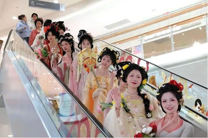 伴随着悠扬的古调,十二位身着华美汉服的“花神”款款步入百联又一城国风舞台。舞台之下,同样是一幅浪漫的春日图景。在“她创繁花”春会市集上,众多市民换上了飘逸的汉服,穿梭在古色古香的摊位间。从非遗竹编到宋代点茶,从投壶验巧到花钿绘制,流动的国风让商圈化作沉浸式的“国潮打卡地”。百联又一城以花朝节的文化底蕴为引线,巧妙串联起商圈消费场景,将商业综合体打造成女性创业就业的赋能平台。此外,区妇联“美心舍”与百联又一城联合发放职场女性福利卡,通过政企联动,把对女性的关爱实打实地转化为商圈的消费活力。
